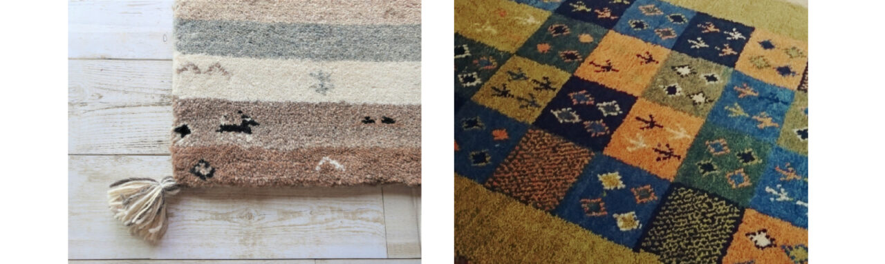 手紡ぎ・草木染・手織りで作られるギャッベは、同じものが存在しない世界にひとつの絨毯です。