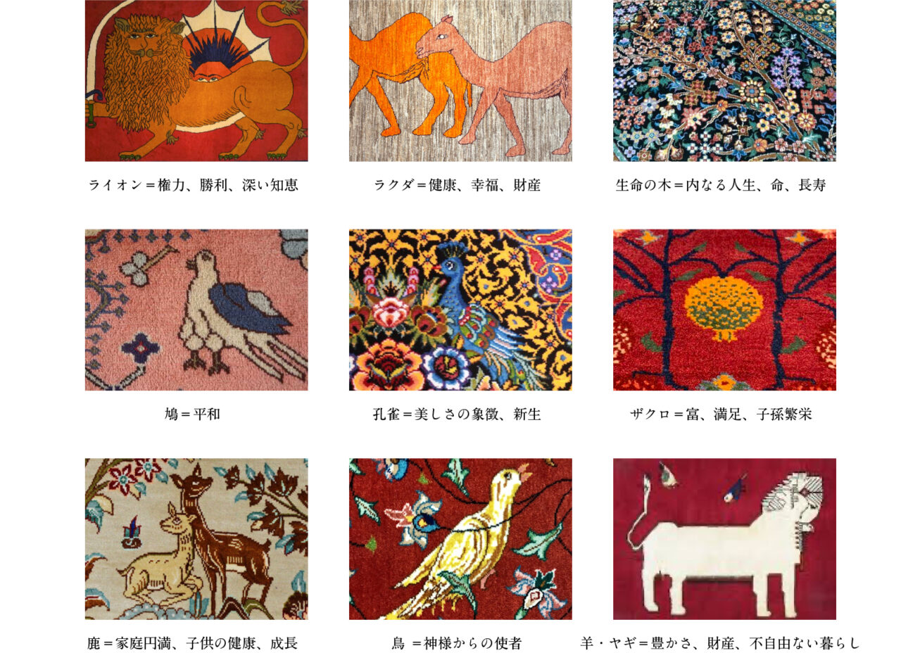 ペルシャ絨毯には遊牧民の夢や祈り、信仰心などが込められ、意味の無いモチーフは無いと言われる程、象徴性に富んでいます。